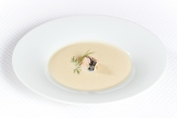 - Krém z čerstvého fenyklu podávaný s pošírovanými závitky z halibuta a mořské řasy Sauvignon 2015, pozdní sběr, Vinařství Na Soutoku Torrontes CUMA 2015, Michel Torino, Argentina